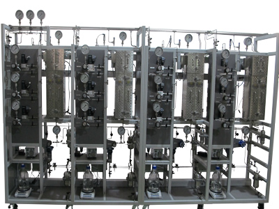 本裝置用于液體物料的高壓加氫和其它高壓反應(yīng),是一種積分反應(yīng)試驗(yàn)裝置。主要用于多個反應(yīng)通道同時快速評價(jià)催化劑,確定初步的工藝條件,為催化劑的中試評價(jià)提供良好的基礎(chǔ)。本裝置由二個以上獨(dú)立的反應(yīng)單元組成,每個單元都有氣體進(jìn)料、液體進(jìn)料、反應(yīng)單元及產(chǎn)物控制系統(tǒng)。