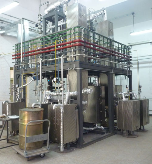 該裝置塔身由Ф50~Ф600不銹鋼制造,每段高度0.5~1.0米,可按用戶要求設(shè)計(jì).每段塔節(jié)可設(shè)計(jì)1~2個(gè)進(jìn)料口/測溫口。整個(gè)精餾塔包括:進(jìn)料罐、進(jìn)料泵、預(yù)熱器、塔釜、塔釜液儲(chǔ)罐、塔頂冷凝器、塔頂回流比控制器、塔頂儲(chǔ)罐等部分組成。塔壓降由變送器測量